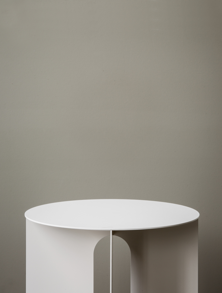 The perfectly proportioned table comprises a sturdy powder coated steel base on which a rounded marble tabletop is balanced. The table’s refined marble top, which barely hangs over the legs to create an overall sense of balance, and contrasting wide, flat legs – laser-cut for precision – make it an easy fit for a range of décor styles. Both base and top are available separately and in ivory or black powder coated steel and white or black marble respectively for total customization.